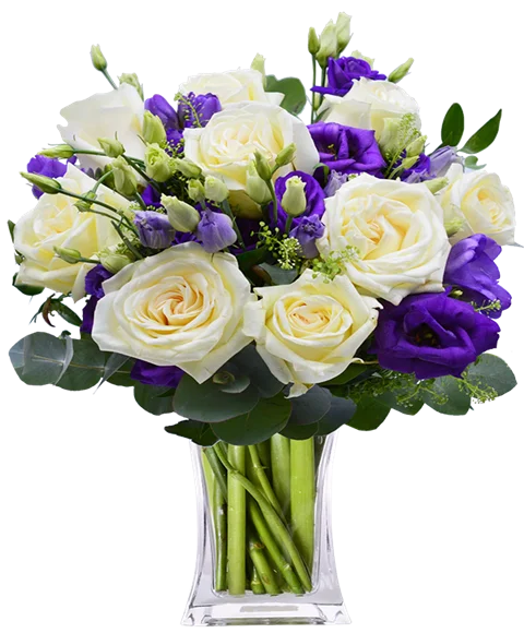 realizzato con lisianthus viola e rose bianche poco verde decorativo